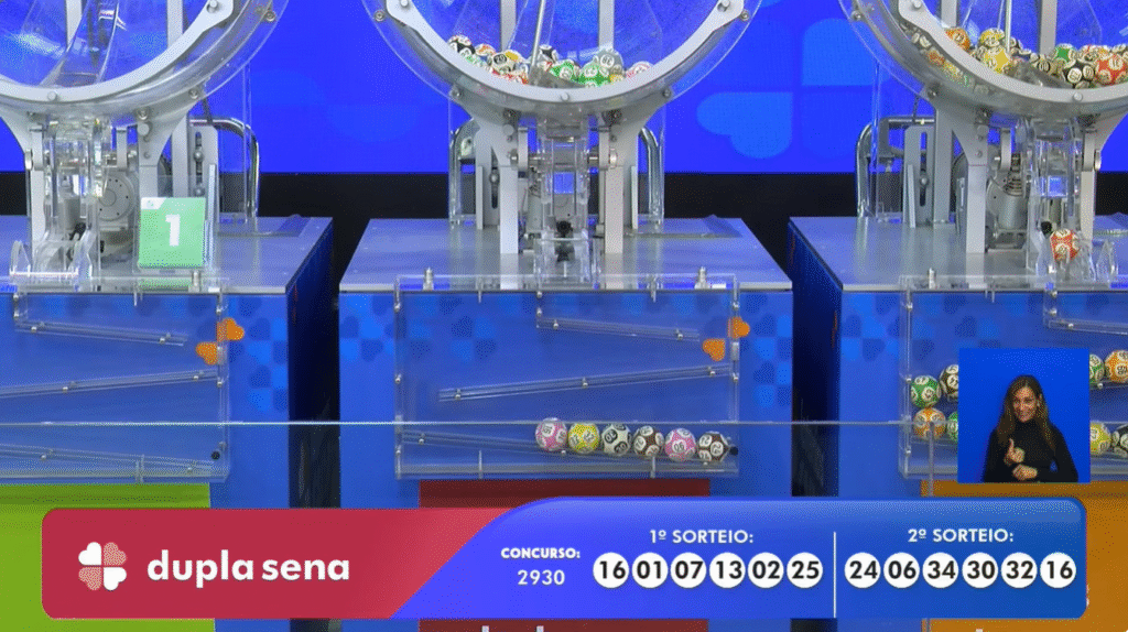 As dezenas sorteadas no 1º sorteio do concurso Resultado da Dupla Sena 2930 foram: 01 – 02 – 07 – 13 – 16 – 25