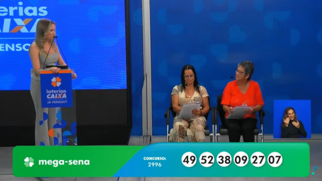 Os números sorteados na Mega-Sena 2996 foram: 07, 09, 27, 38, 49, 52.