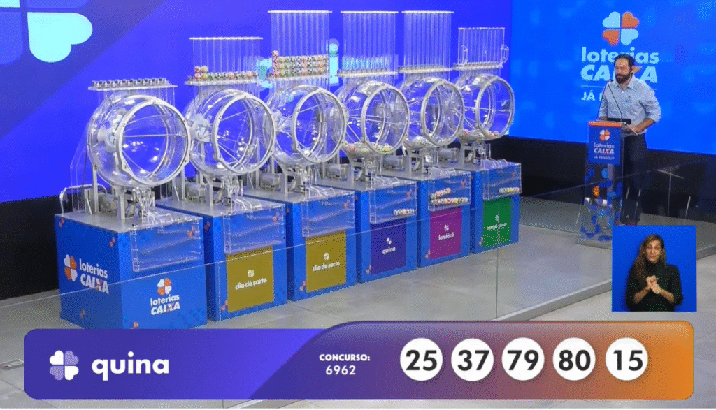 A Caixa Econômica Federal realiza, na noite desta quinta-feira (26), o sorteio do concurso 6962 da Quina. O evento, sediado no Espaço da Sorte, em São Paulo, coloca em jogo um prêmio estimado em R$ 1,9 milhão para quem acertar as cinco dezenas principais.