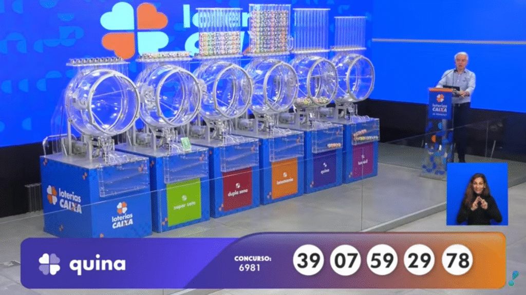 Os números sorteados na Quina 6981 foram: 07, 29, 39, 59, 78