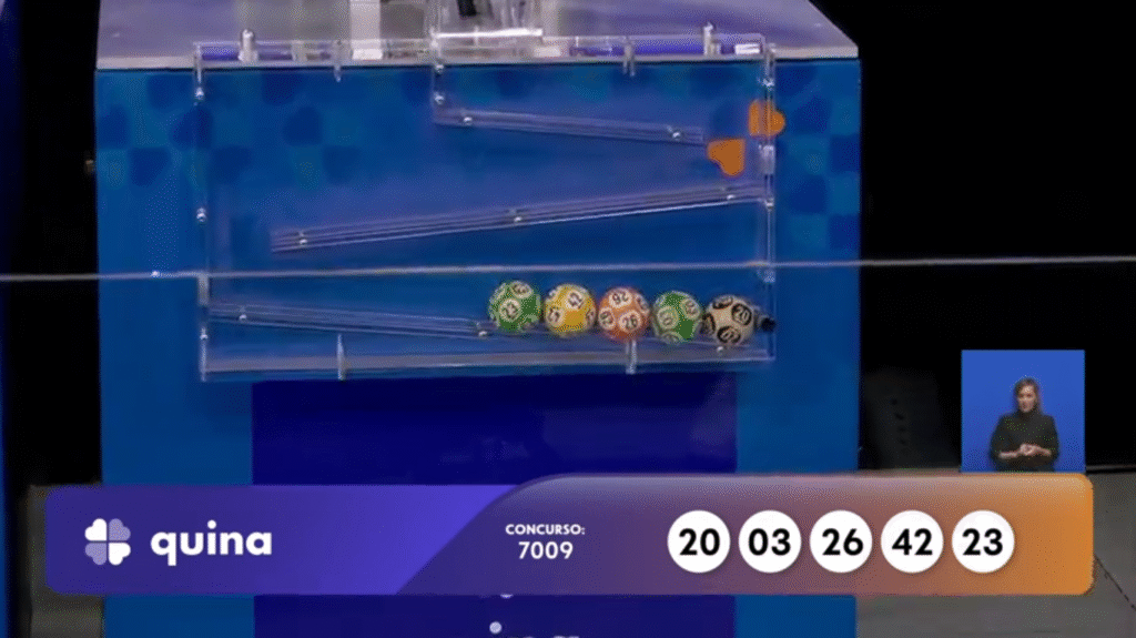 Os números sorteados na Quina 7009 foram: 03, 20, 23, 26, 42.