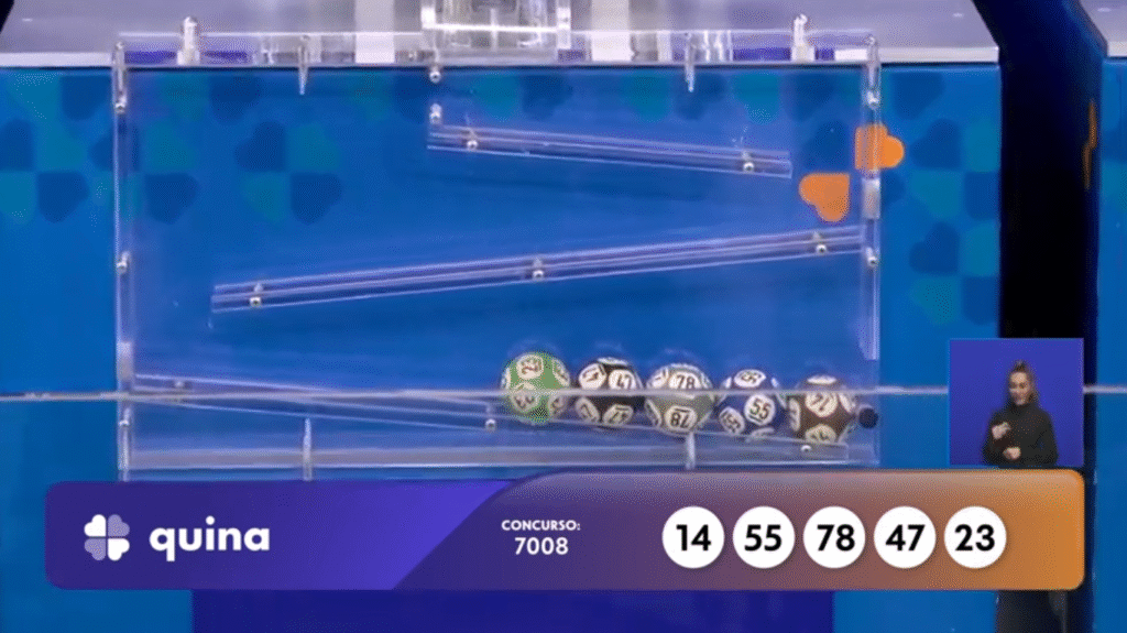 Os números sorteados na Quina 7008 foram: 14, 23, 47, 55, 78.