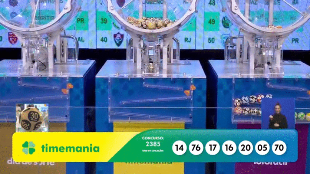 Os números sorteados na Timemania 2385 foram: 05, 14, 16, 17, 20, 70, 76 e o Time do Coração foi: 30.